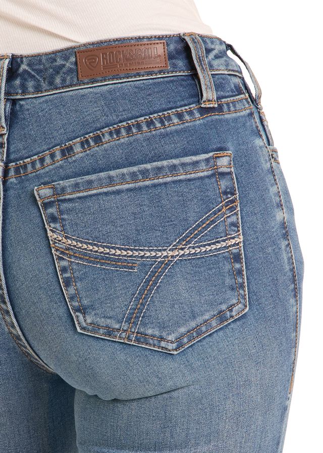 8472 Rock & Roll Ladies Curved Embroidered Boot Cut Jeans